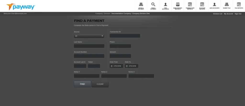 The Find a Payment function allows you to research transactions that were processed on Payway and operate on them if necessary.