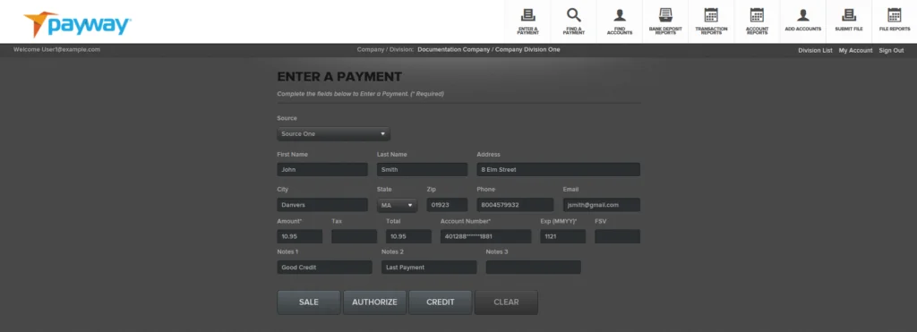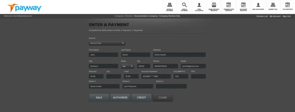 A copy of the account will be inserted into the “Enter a Payment” screen.
