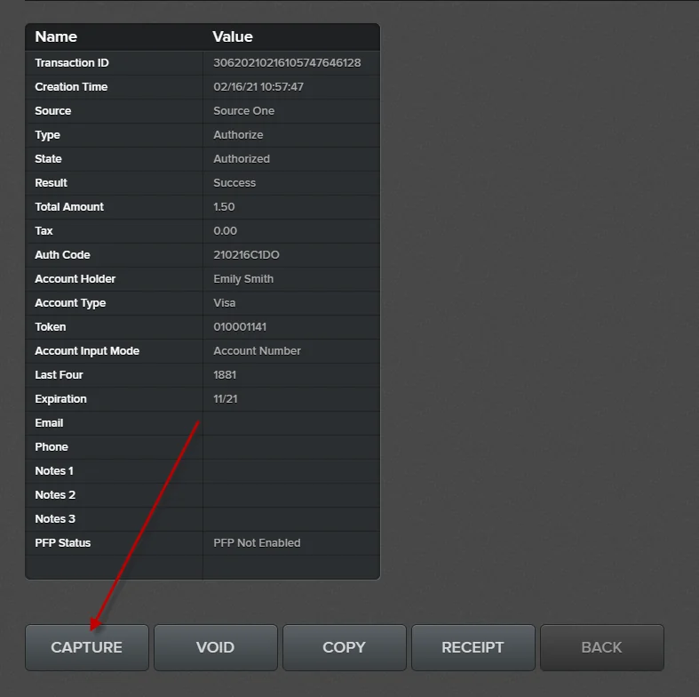To capture a transaction that meets these criteria, select the “CAPTURE” button.