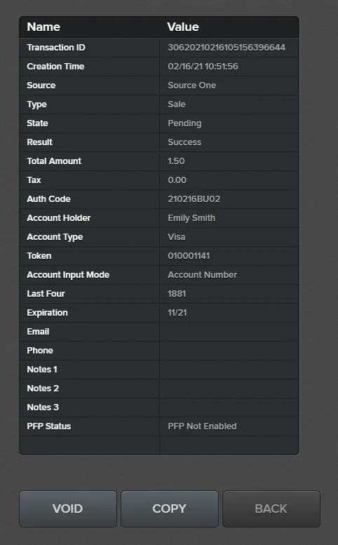 Once the pop-up has been cleared, the State of the transaction will be changed from “Pending” to “Voided.”